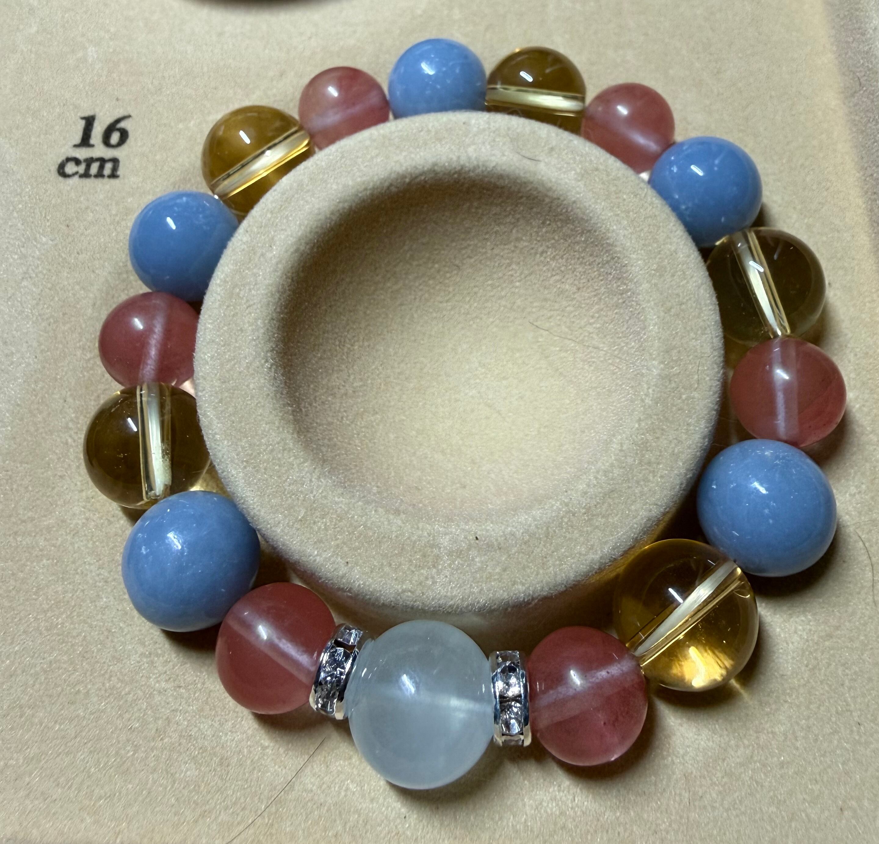 チェリークオーツ・イエロークオーツ・エンジェライト・アクアマリン使用。
